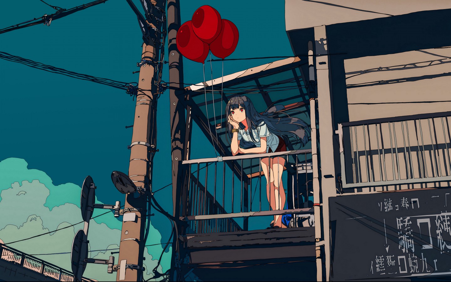 Anime Girl Red Balloons Balcony Wallpaper - 1440x900
