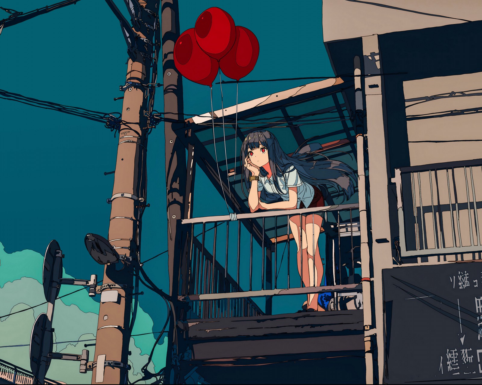 Anime Girl Red Balloons Balcony Wallpaper - 1600x1280