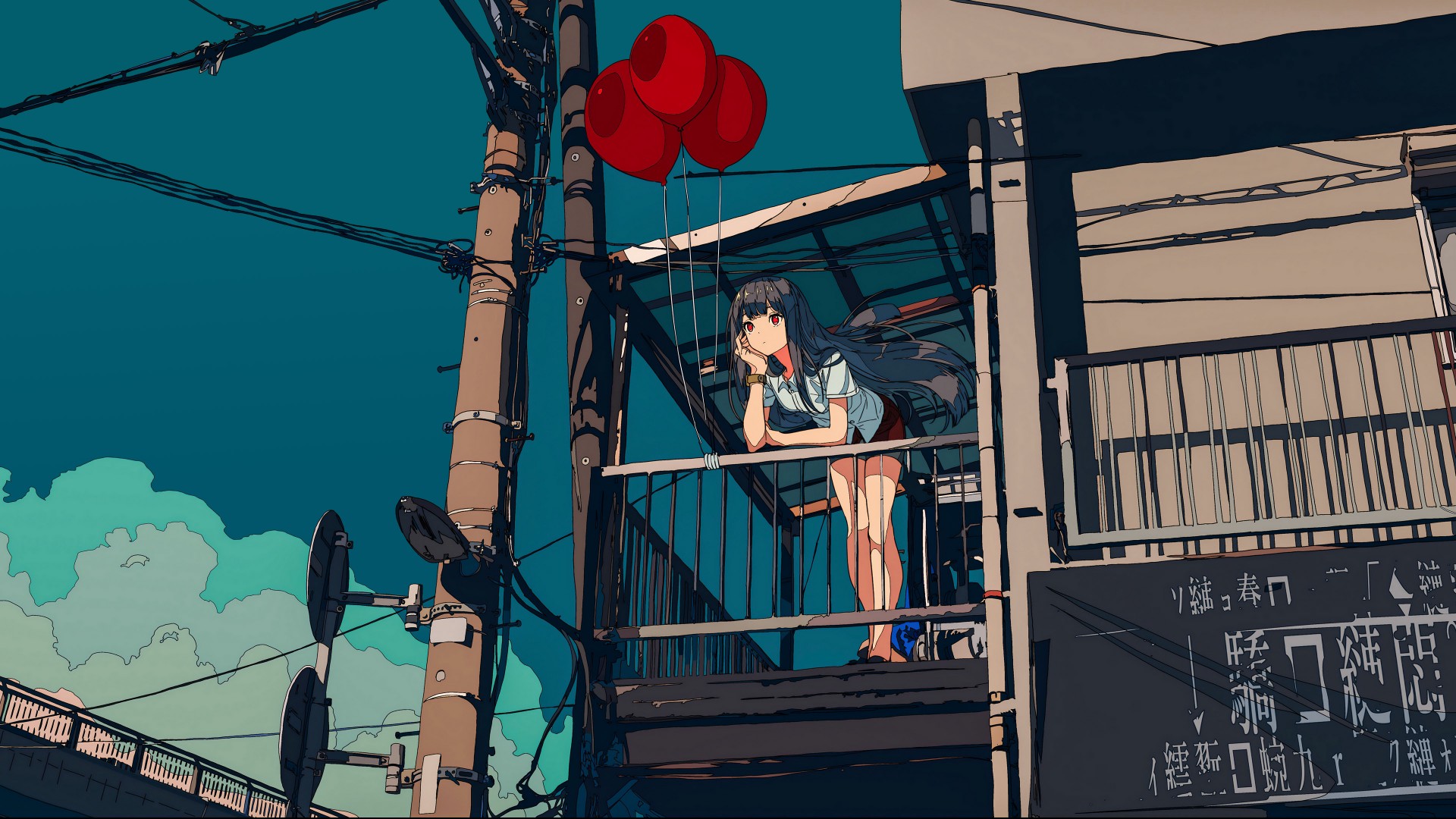 Anime Girl Red Balloons Balcony Wallpaper - 1920x1080