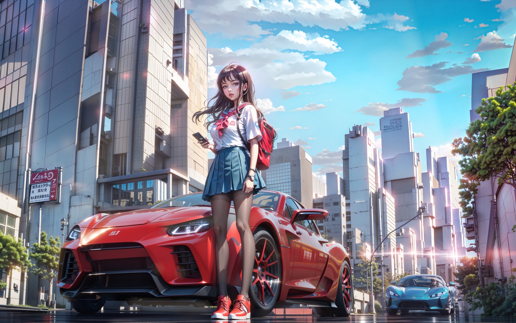 Anime Girl School Uniform Car Wallpaper - 1680x1050