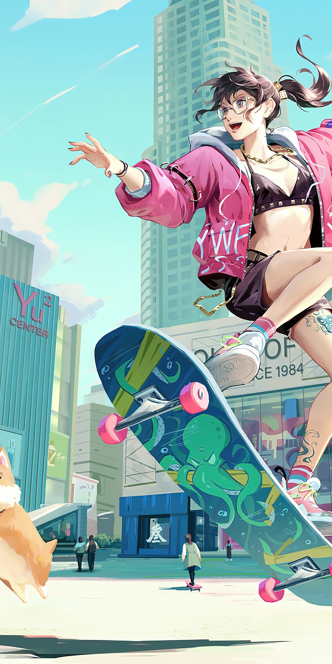 Anime Girl Skateboard Corgi Jacket Wallpaper - 1080x2160