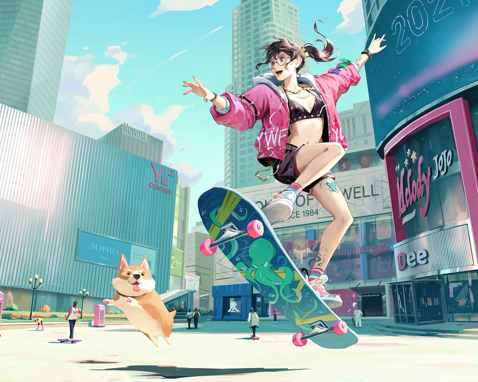 Anime Girl Skateboard Corgi Jacket Wallpaper - 1600x1280