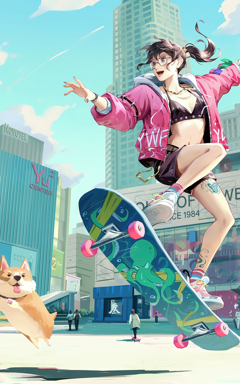Anime Girl Skateboard Corgi Jacket Wallpaper - 800x1280