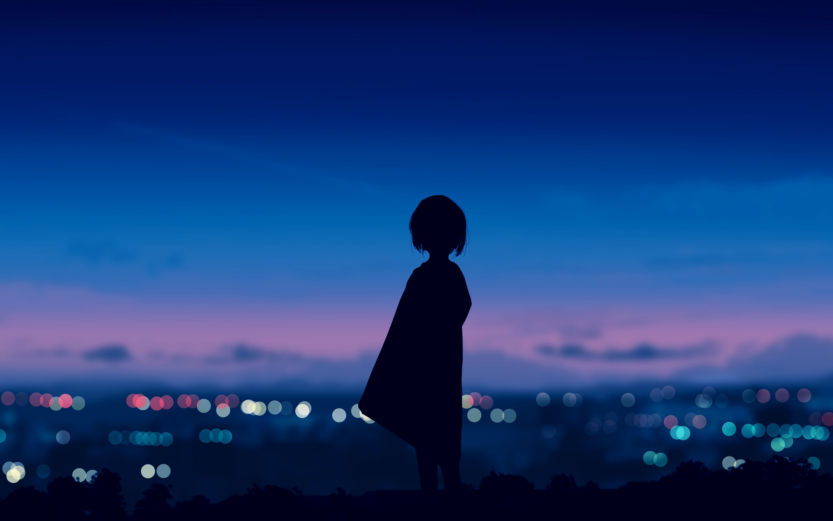 Anime Girl Standing City Lights Wallpaper - 2880x1800