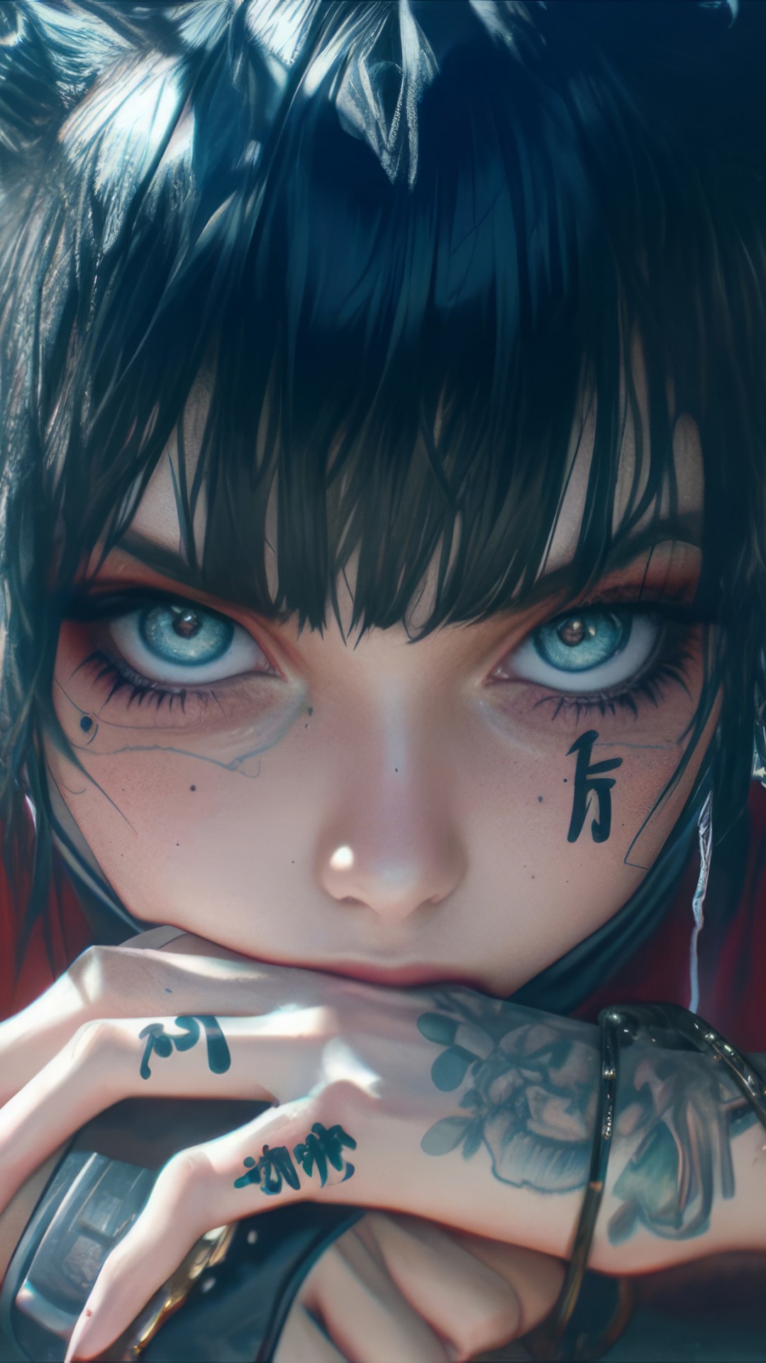 Anime Girl Tattoo Katana Ai Art Wallpaper - 1080x1920
