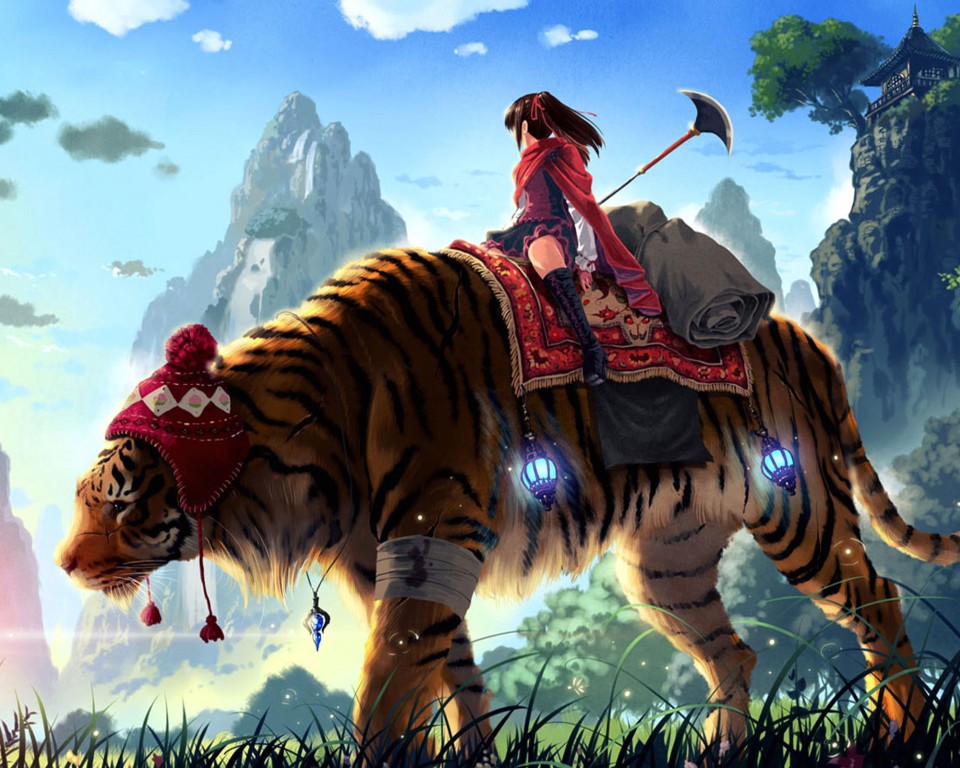 Anime Girl Tiger Fantasy Art Wallpaper - 960x768