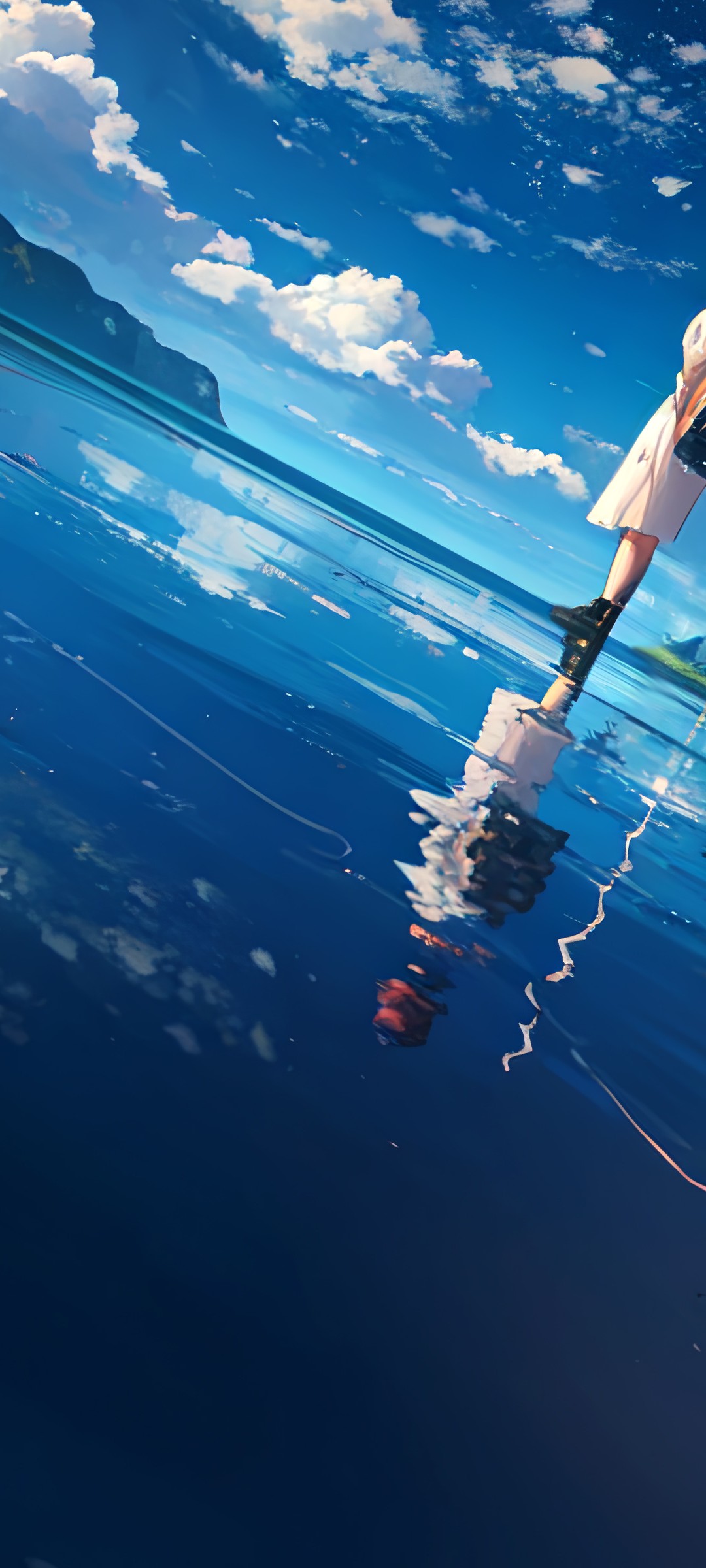 Anime Girl Water Reflection Clouds Scenery Wallpaper - 1080x2400
