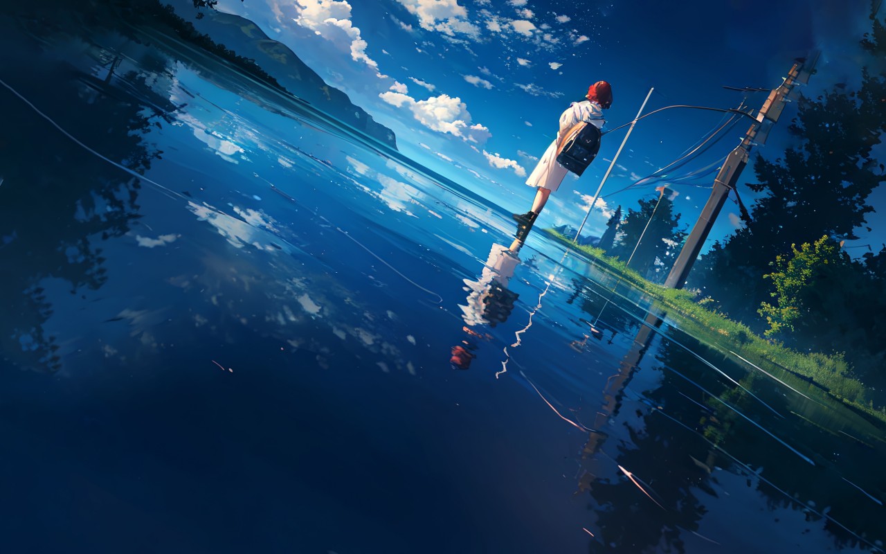 Anime Girl Water Reflection Clouds Scenery Wallpaper - 1280x800