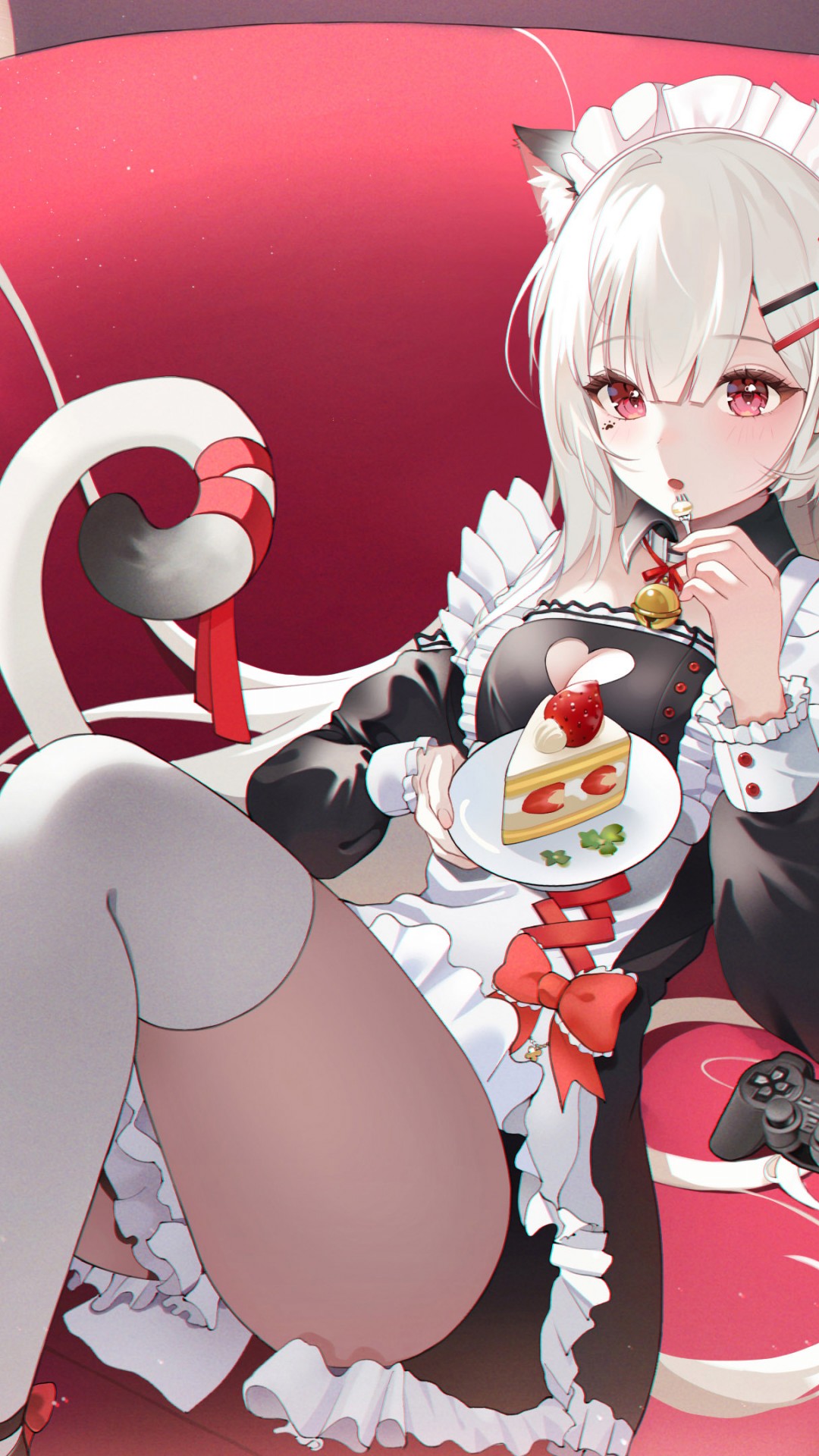 Anime Girl White Hair Fruit Cake Wallpaper - 1080x1920