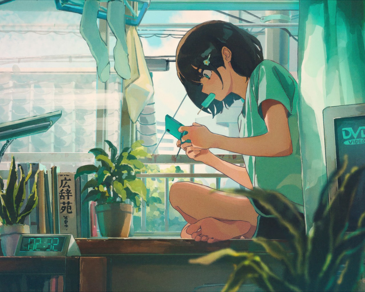Anime Girl Window TV DVD Painting Wallpaper - 1280x1024