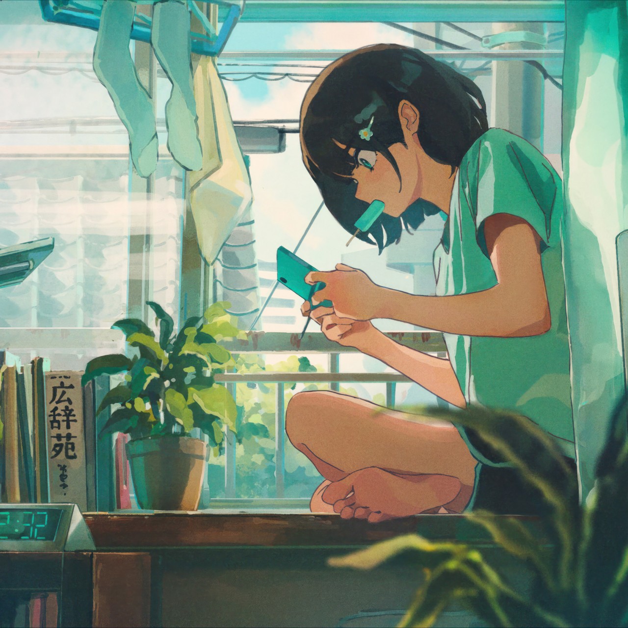 Anime Girl Window TV DVD Painting Wallpaper - 1280x1280