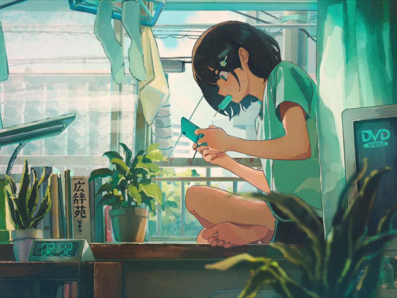 Anime Girl Window TV DVD Painting Wallpaper - 1280x960