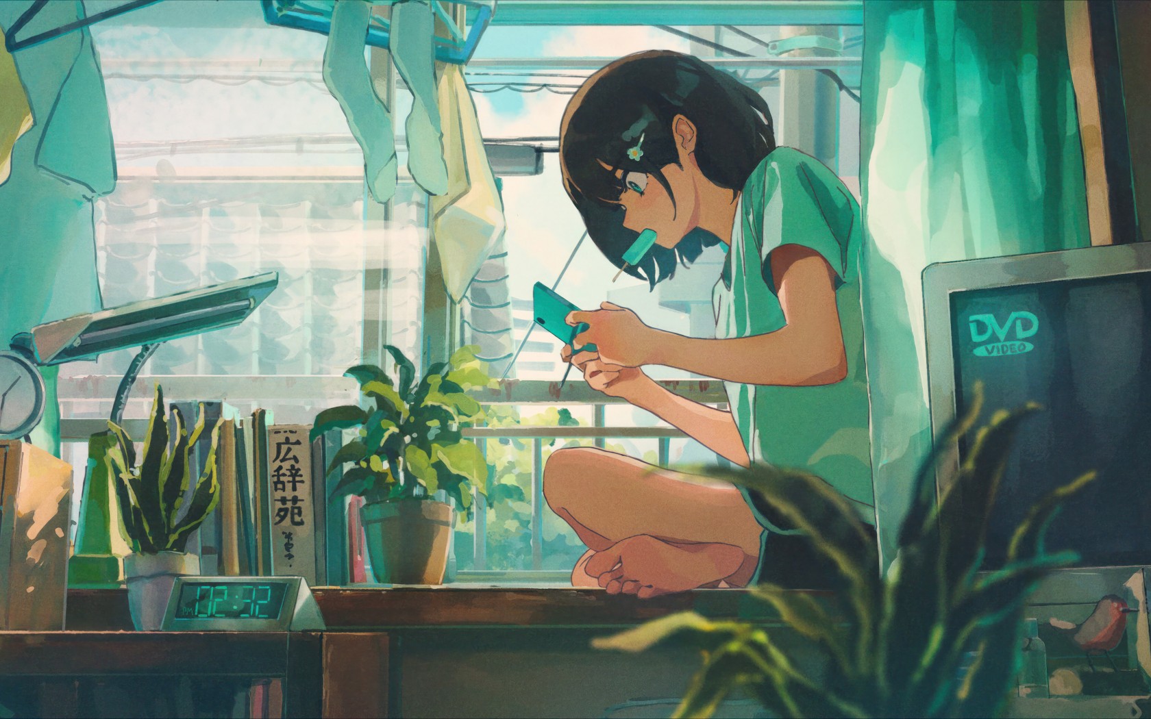 Anime Girl Window TV DVD Painting Wallpaper - 1680x1050