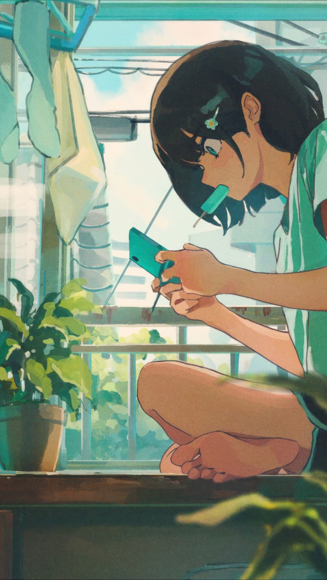 Anime Girl Window TV DVD Painting Wallpaper - 640x1136