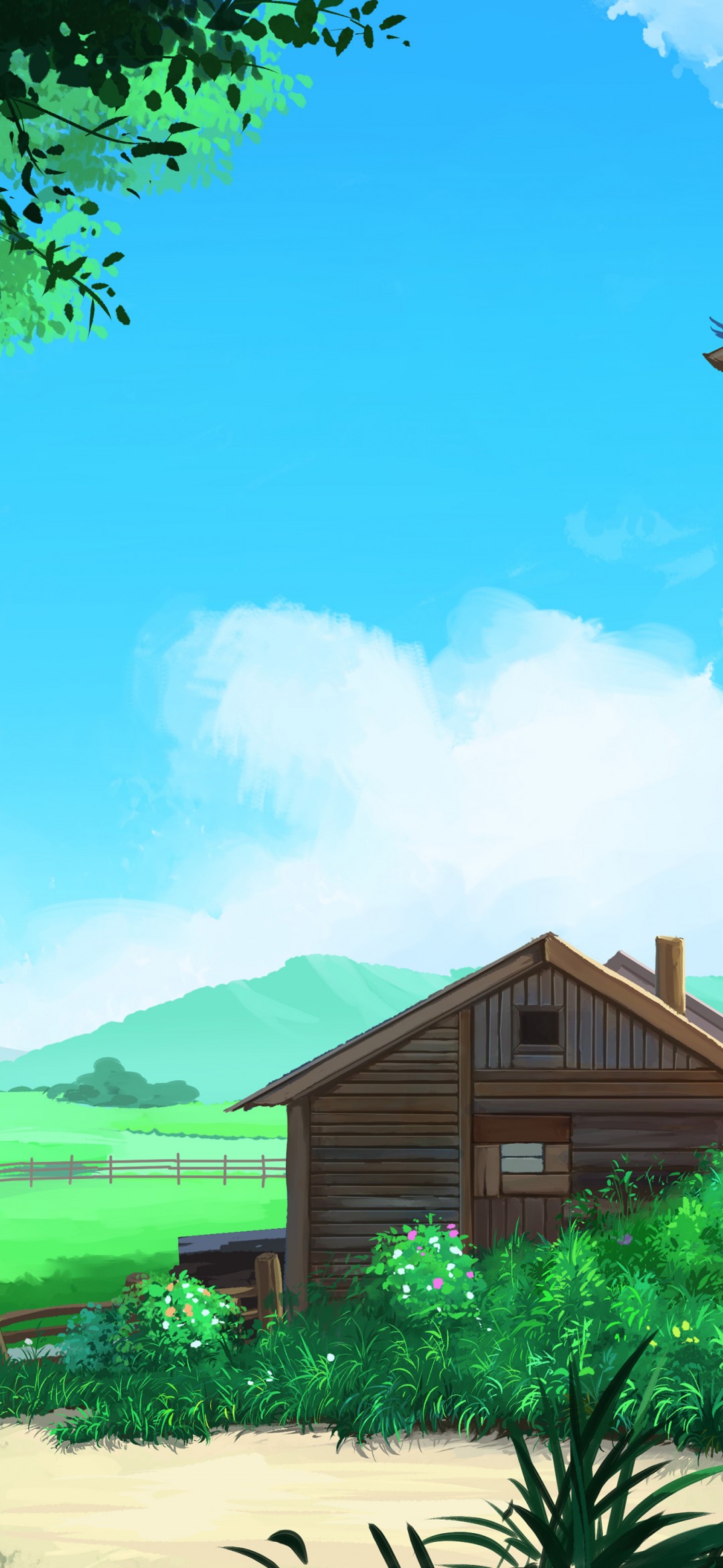 Anime Landscape Hut Sky Wallpaper - 1080x2340