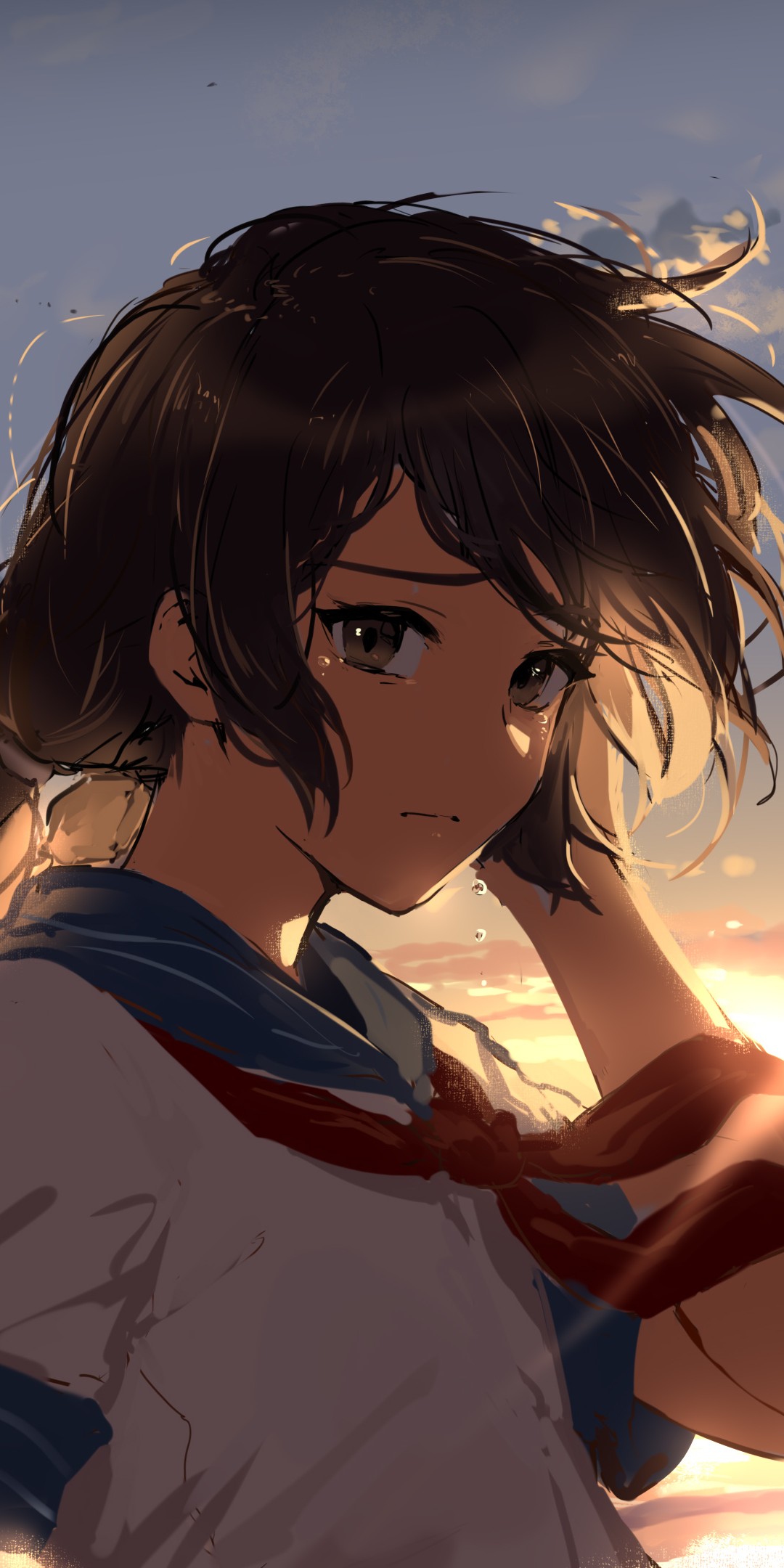 Brunette Anime Girl Sky Scenery Wallpaper - 1080x2160