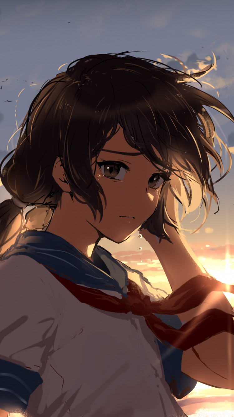 Brunette Anime Girl Sky Scenery Wallpaper - 750x1334