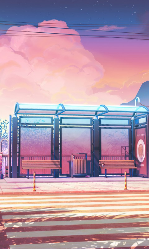 Bus Station Warm Sunset Rays Scenery Wallpaper - 480x800