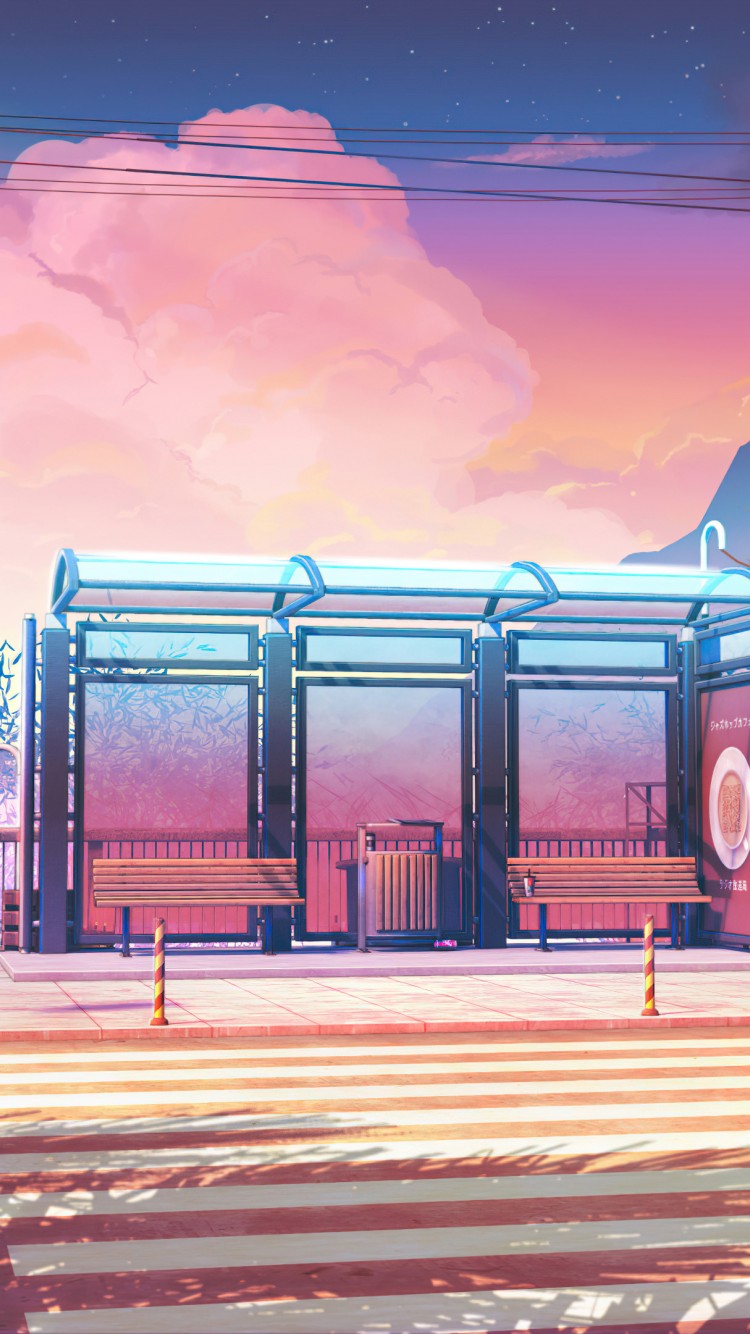 Bus Station Warm Sunset Rays Scenery Wallpaper - 750x1334