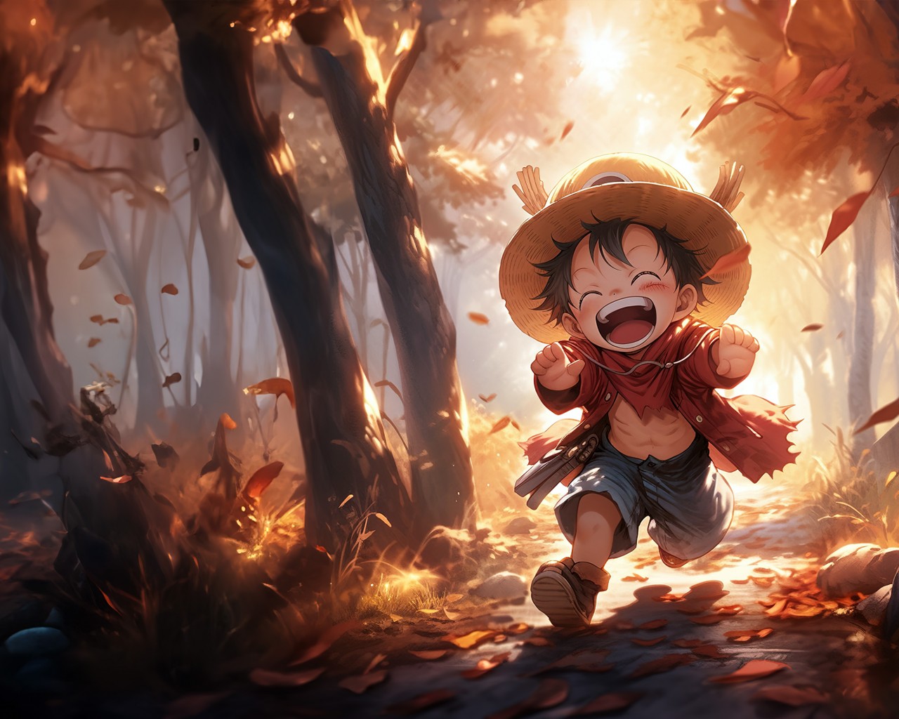 Chibi Luffy Autumn Forest AI Art Wallpaper - 1280x1024