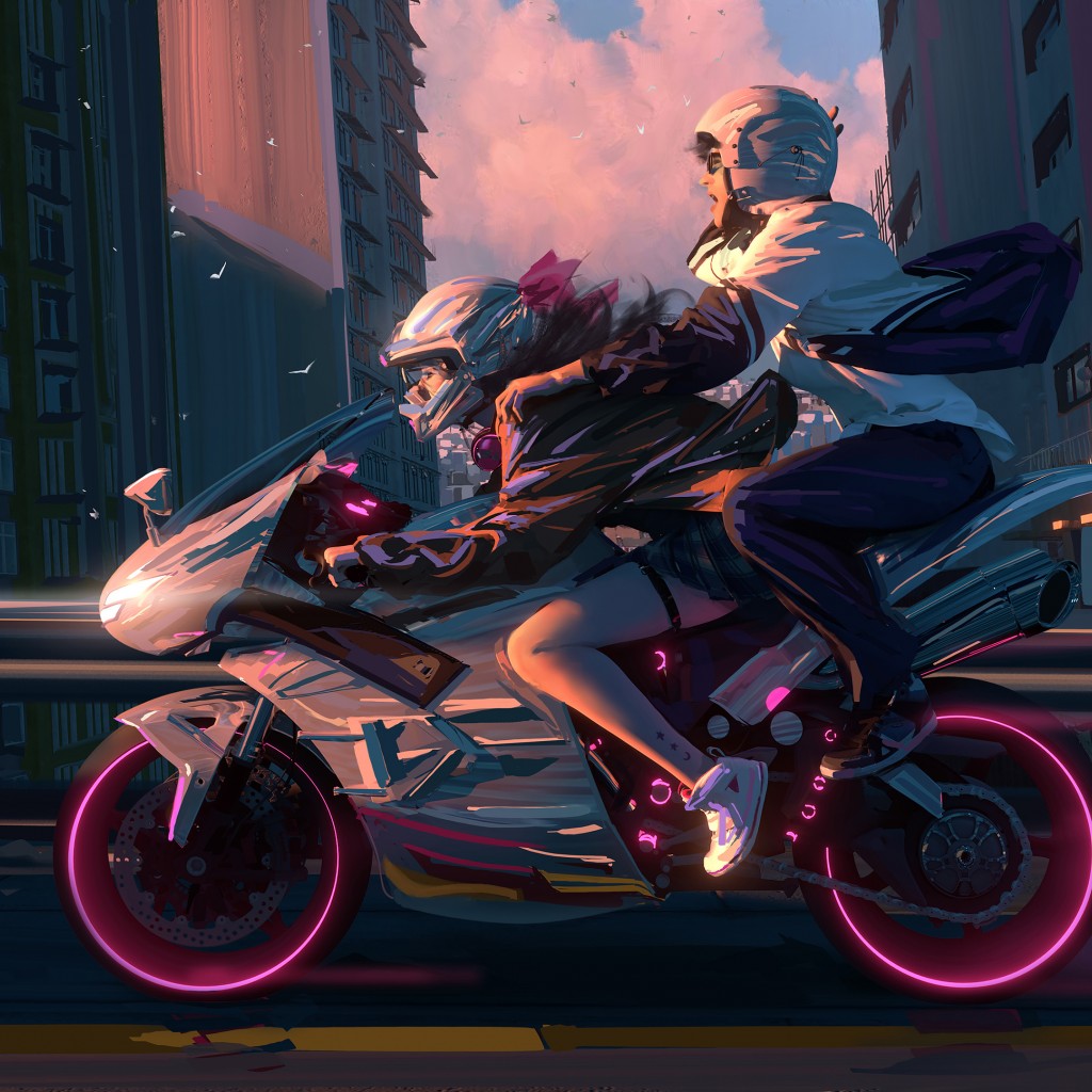 Couple Motorcycle Glowing Wheels Wallpaper - 1024x1024