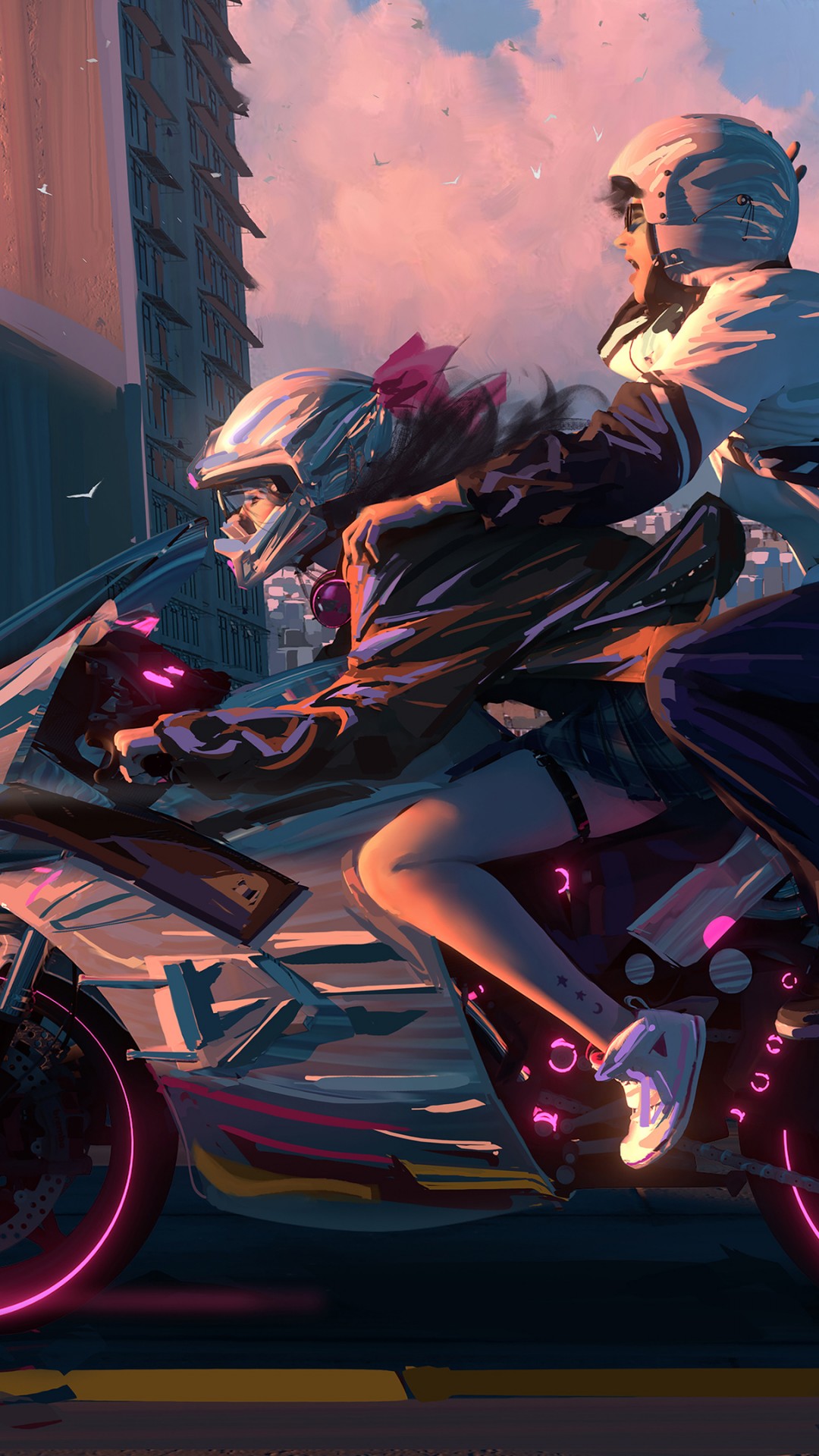 Couple Motorcycle Glowing Wheels Wallpaper - 1080x1920