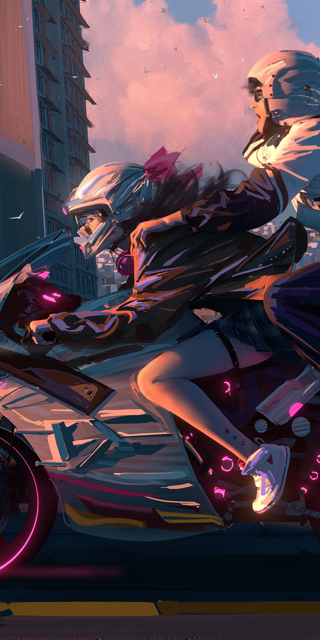 Couple Motorcycle Glowing Wheels Wallpaper - 1080x2160