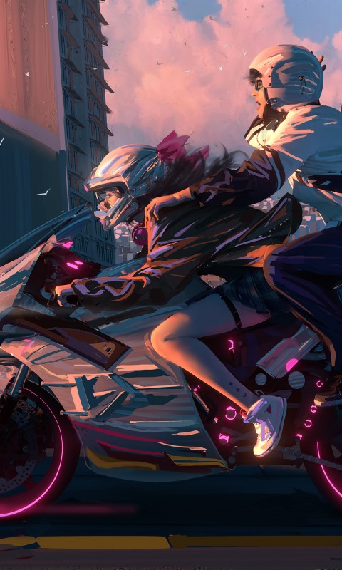 Couple Motorcycle Glowing Wheels Wallpaper - 480x800