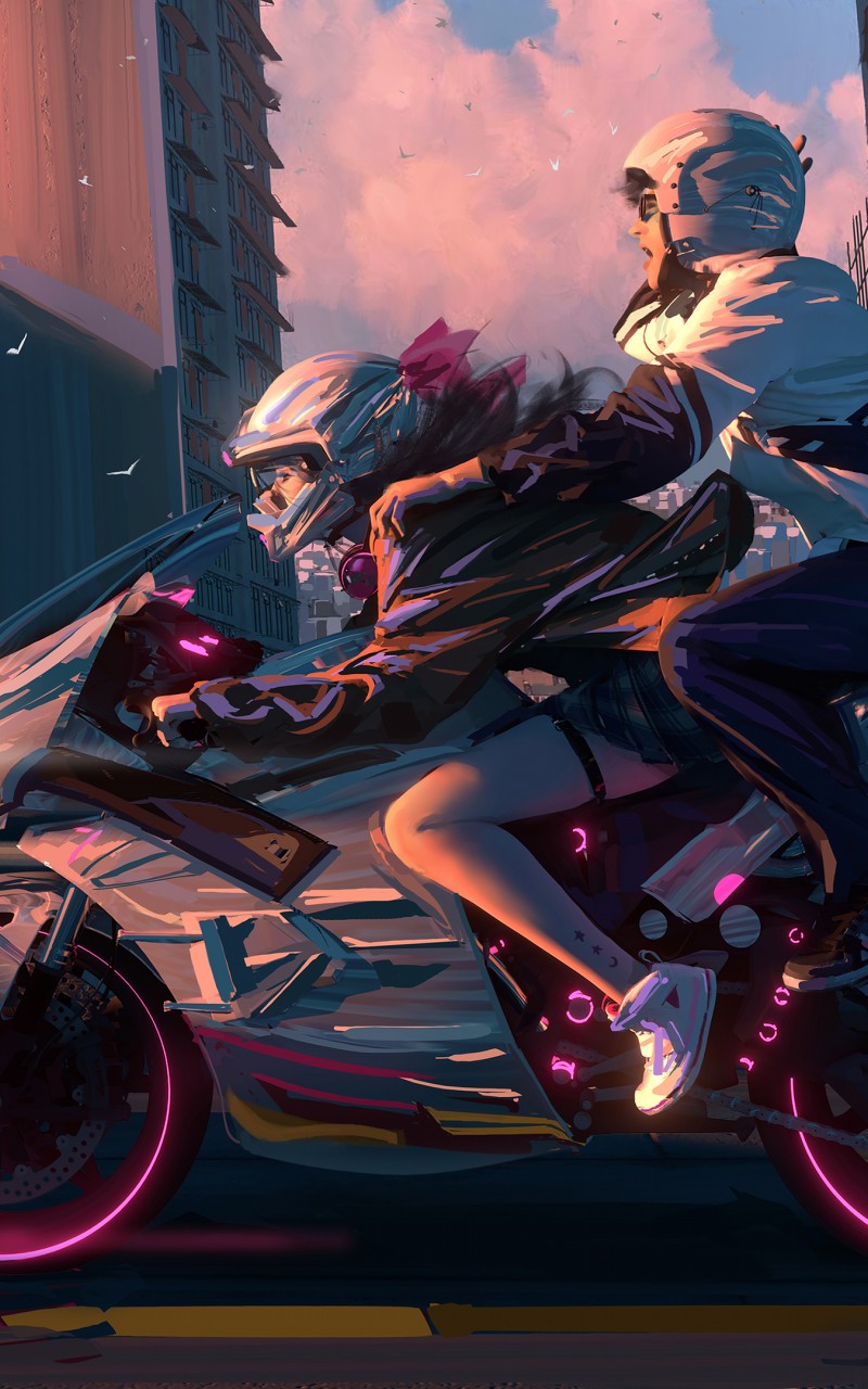 Couple Motorcycle Glowing Wheels Wallpaper - 800x1280