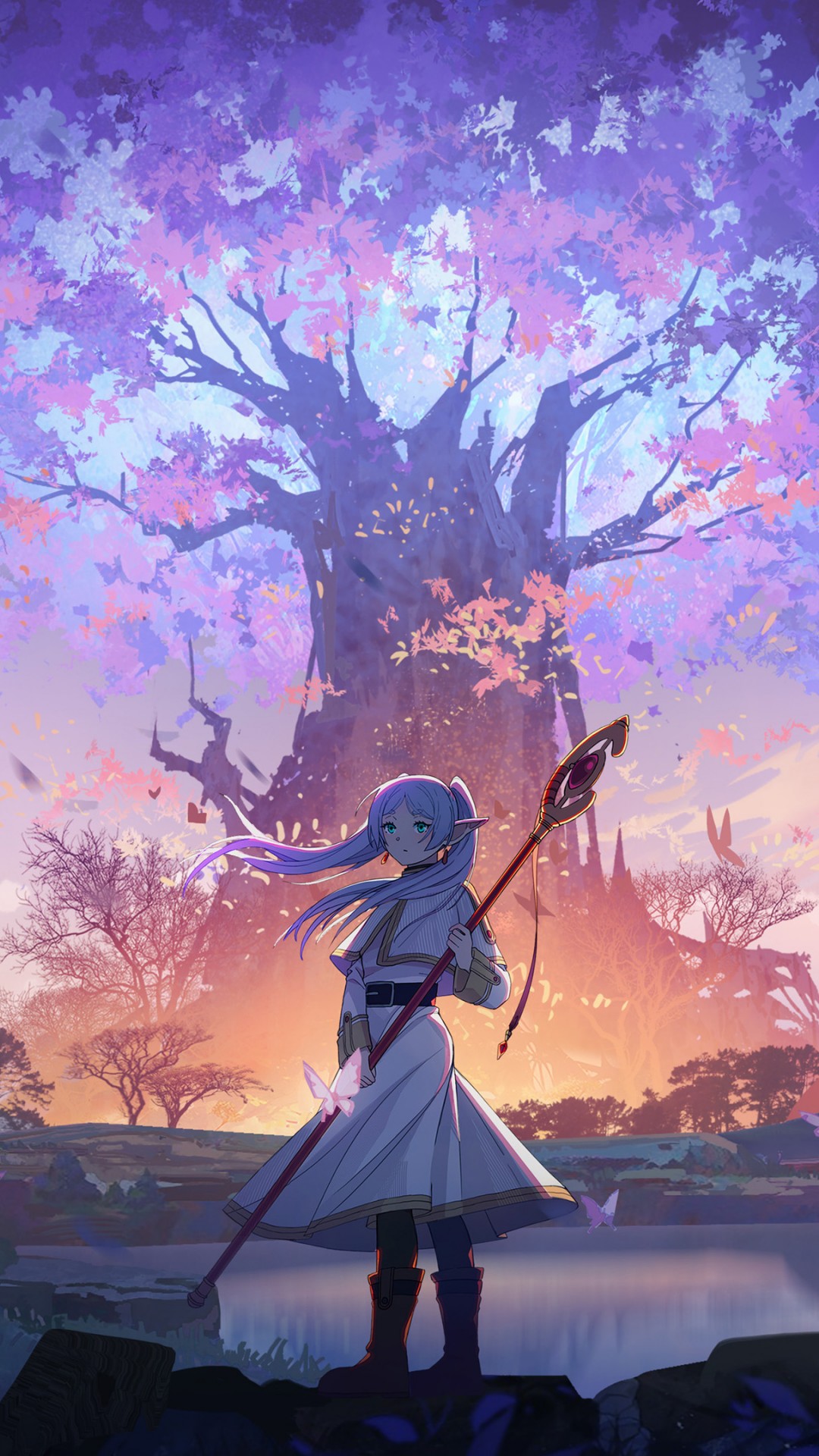 Frieren Anime Girl Tree Scenery Wallpaper - 1080x1920