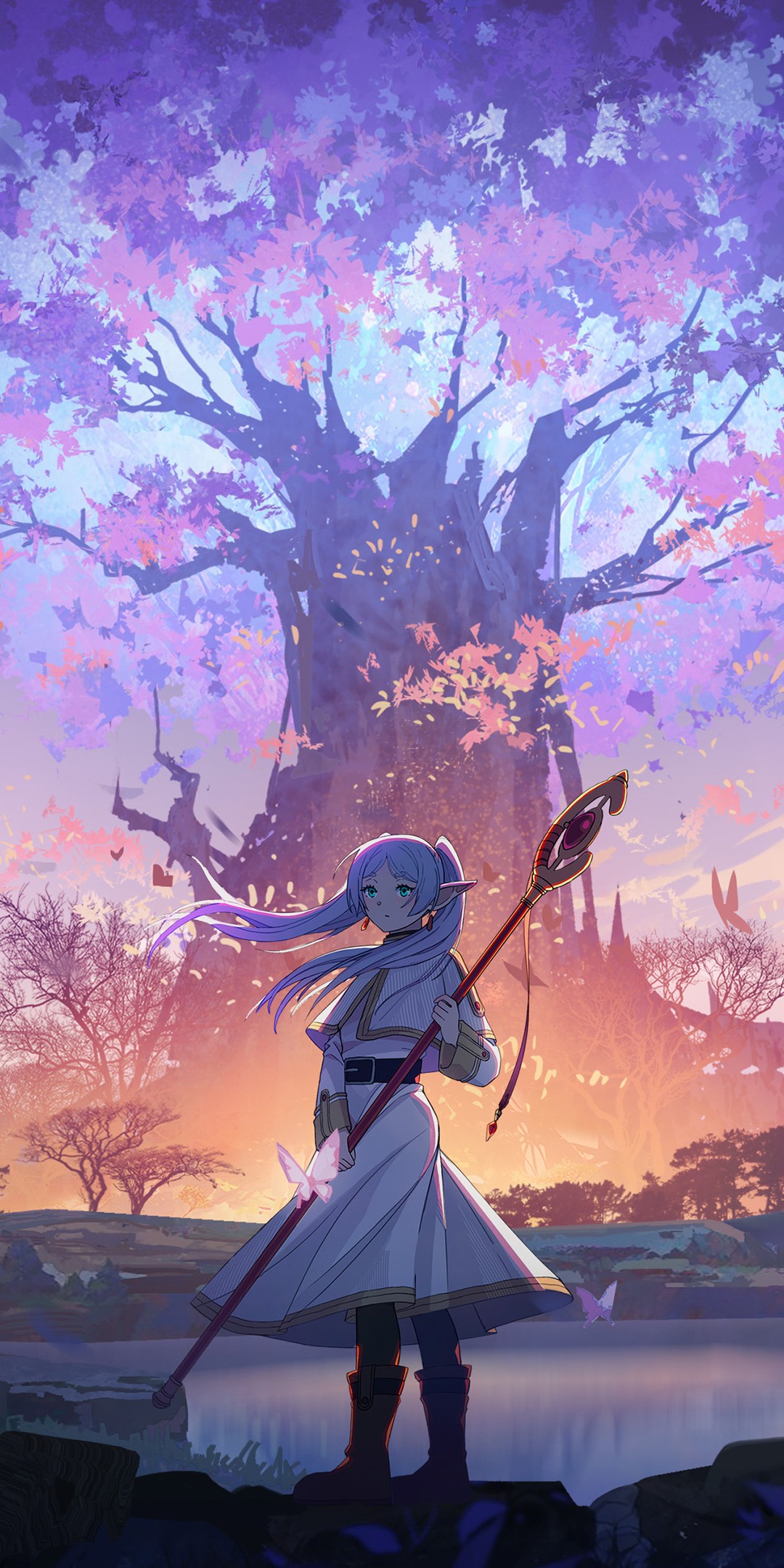 Frieren Anime Girl Tree Scenery Wallpaper - 1080x2160