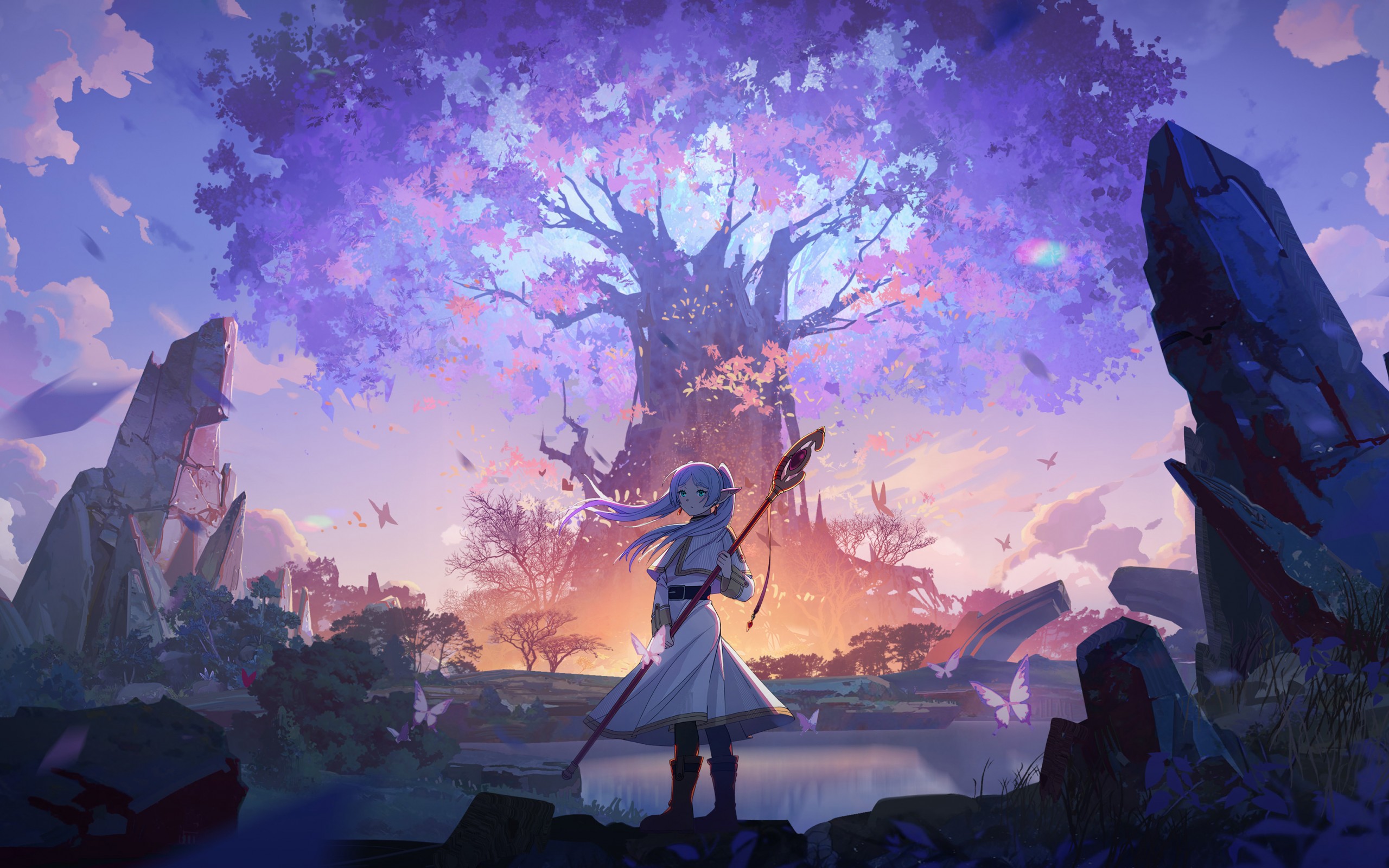 Frieren Anime Girl Tree Scenery Wallpaper - 2560x1600