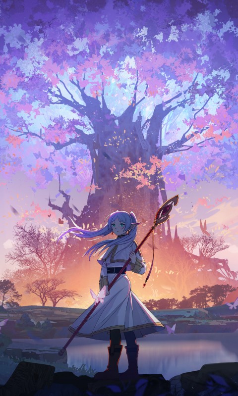 Frieren Anime Girl Tree Scenery Wallpaper - 480x800