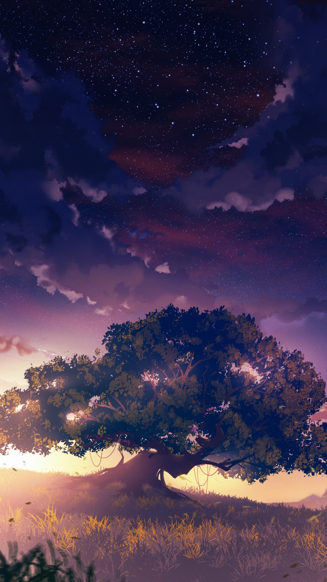 Genshin Impact Artwork Tree Stars Wallpaper - 1080x1920