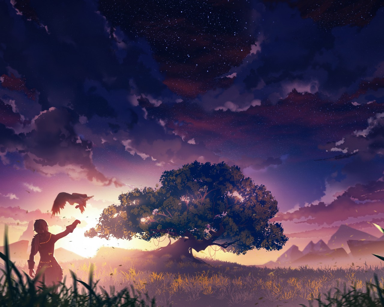 Genshin Impact Artwork Tree Stars Wallpaper - 1280x1024