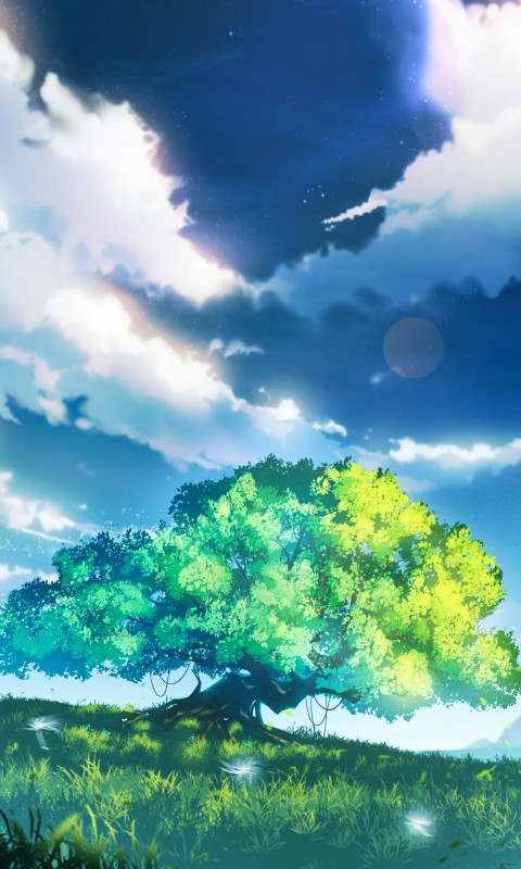 Genshin Impact Scenery Tree Art Wallpaper - 480x800
