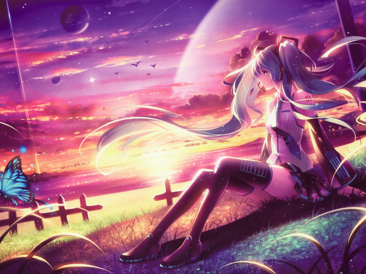 Hatsune Miku Anime Girl Butterfly Wallpaper - 1280x960