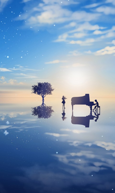 Kousei Arima Your Lie in April Sky Piano Wallpaper - 480x800