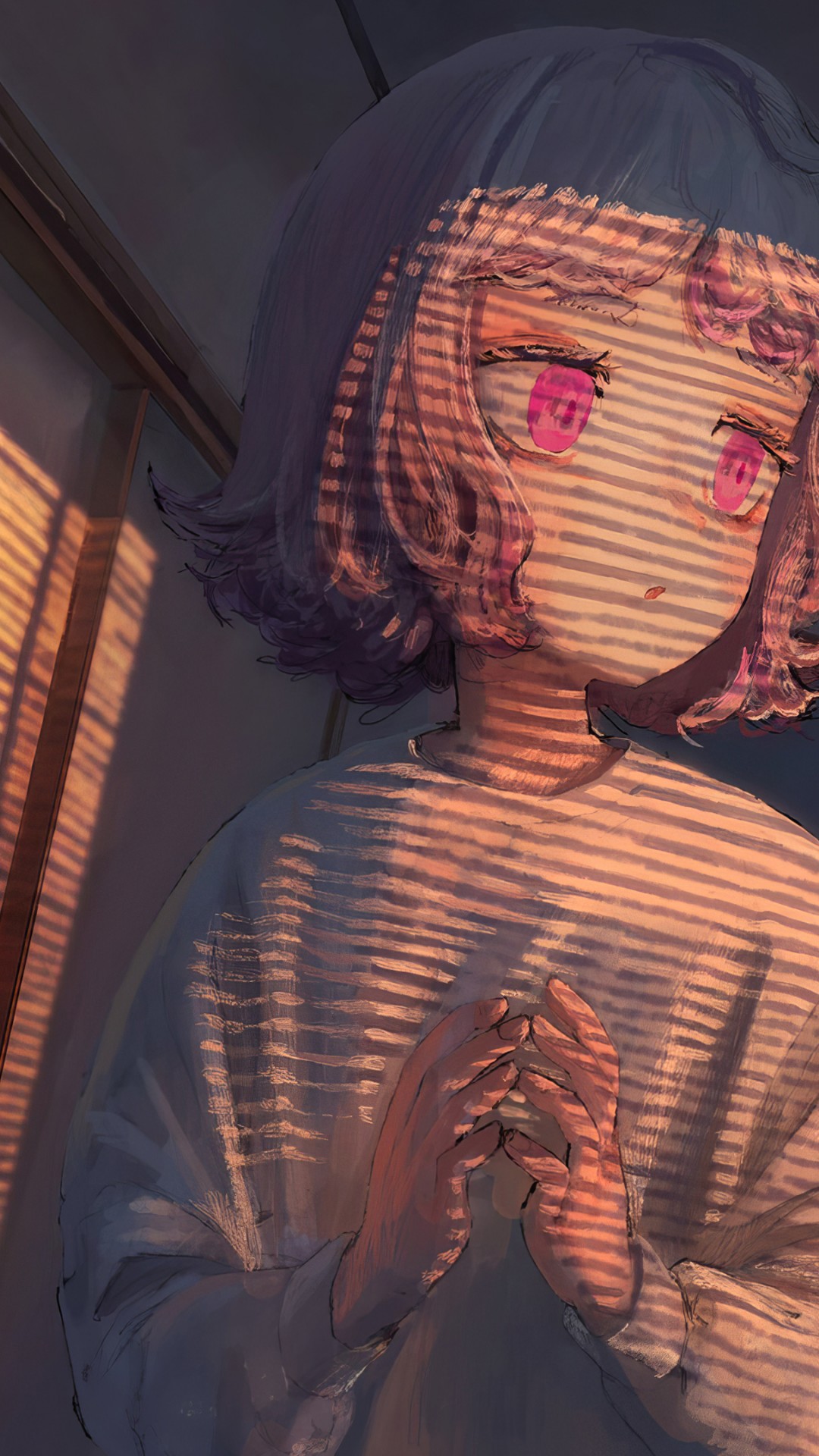 Pink Eyes Anime Girl Blinds Shadow Wallpaper - 1080x1920