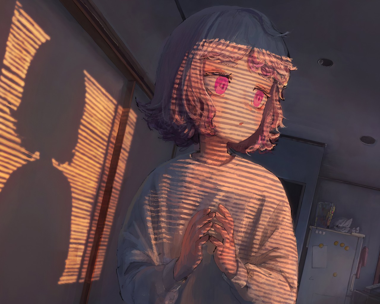 Pink Eyes Anime Girl Blinds Shadow Wallpaper - 1280x1024