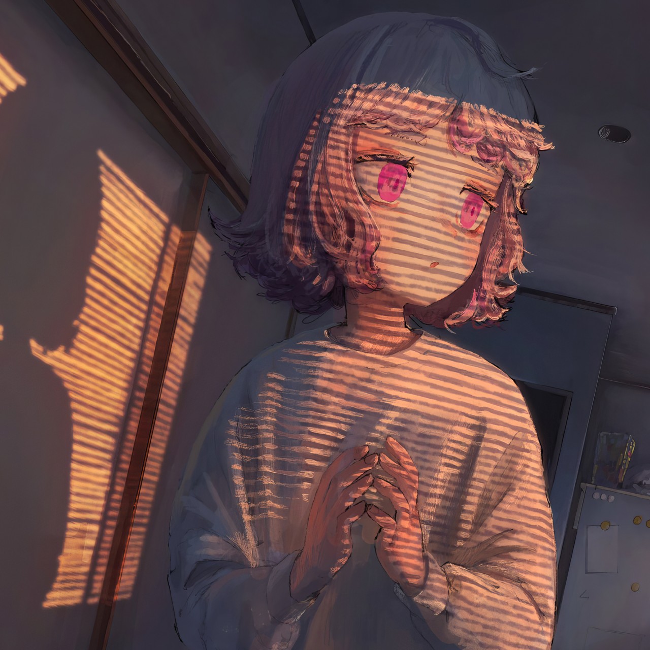 Pink Eyes Anime Girl Blinds Shadow Wallpaper - 1280x1280