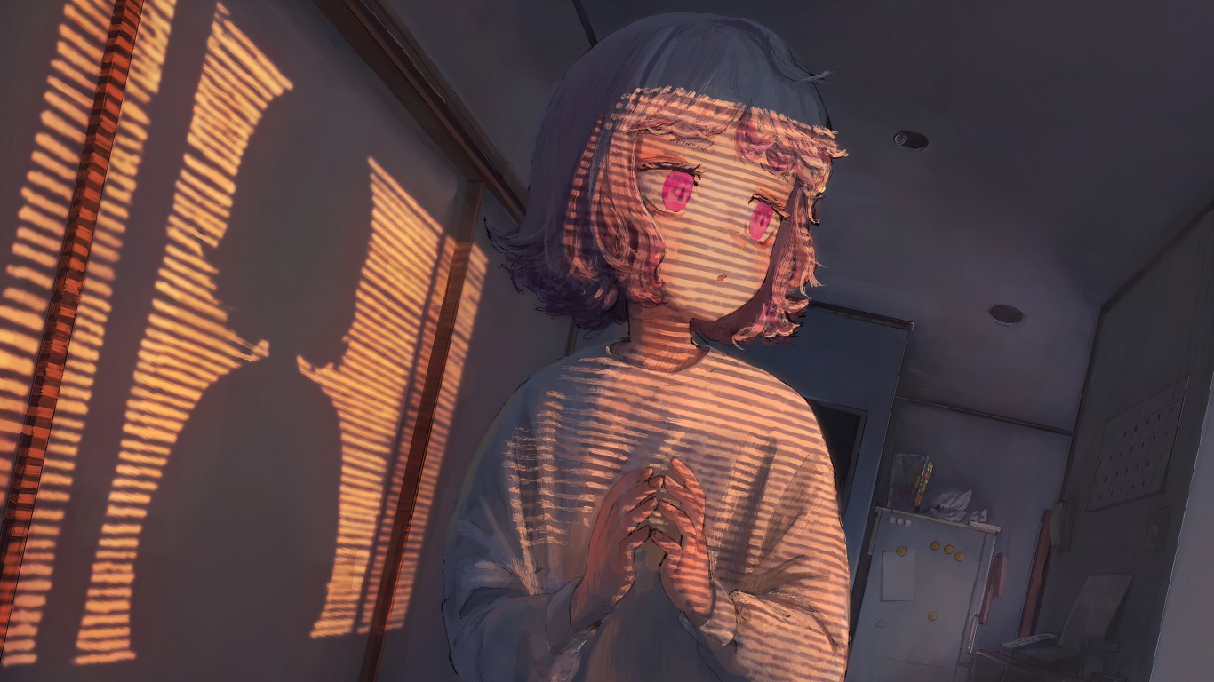 Pink Eyes Anime Girl Blinds Shadow Wallpaper - 1366x768