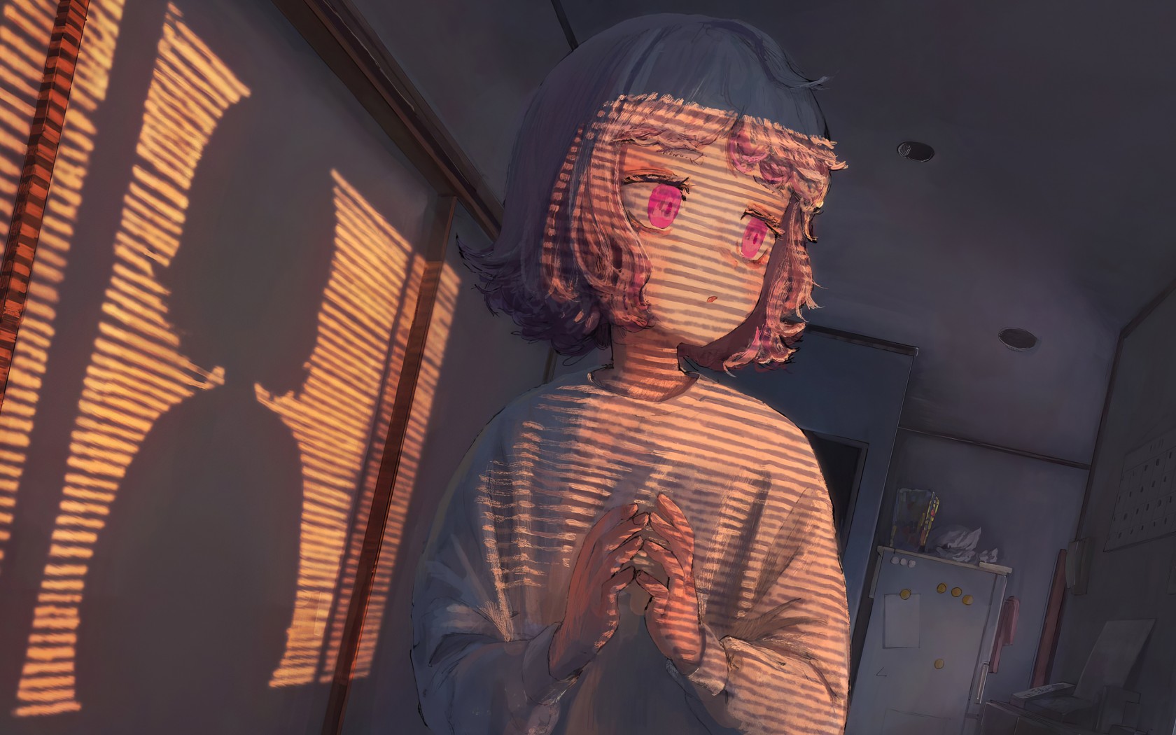 Pink Eyes Anime Girl Blinds Shadow Wallpaper - 1680x1050