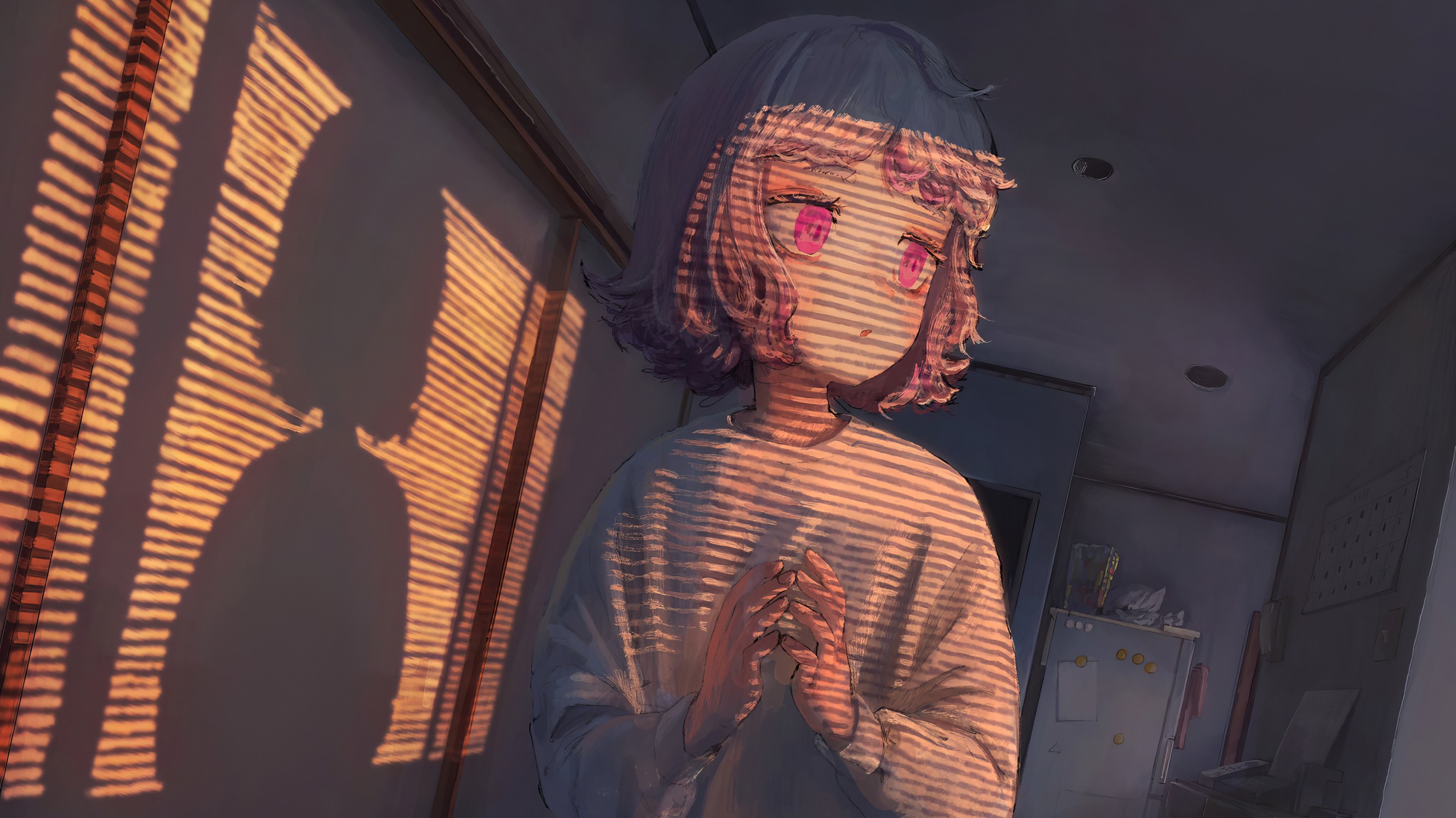 Pink Eyes Anime Girl Blinds Shadow Wallpaper - 2880x1620