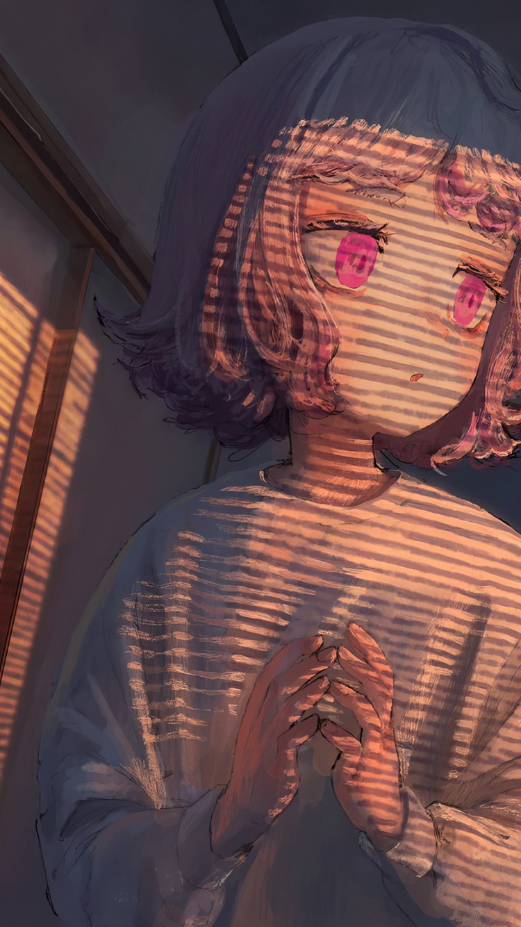 Pink Eyes Anime Girl Blinds Shadow Wallpaper - 750x1334
