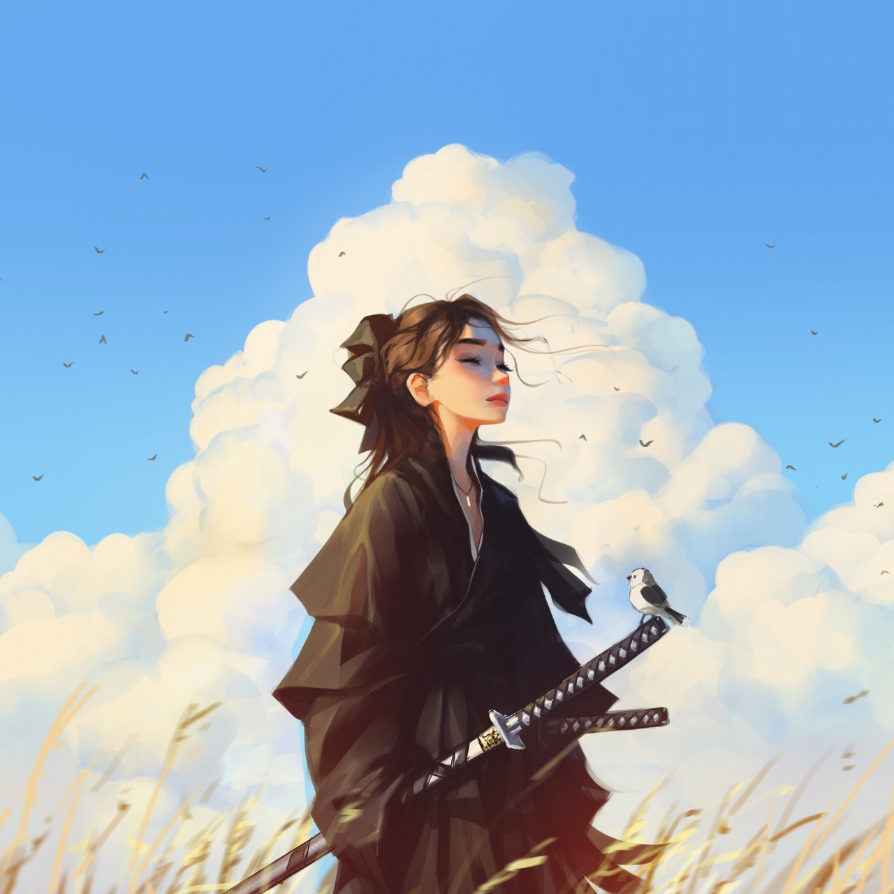 Samurai Girl Clouds Field Artwork Wallpaper - 1280x1280