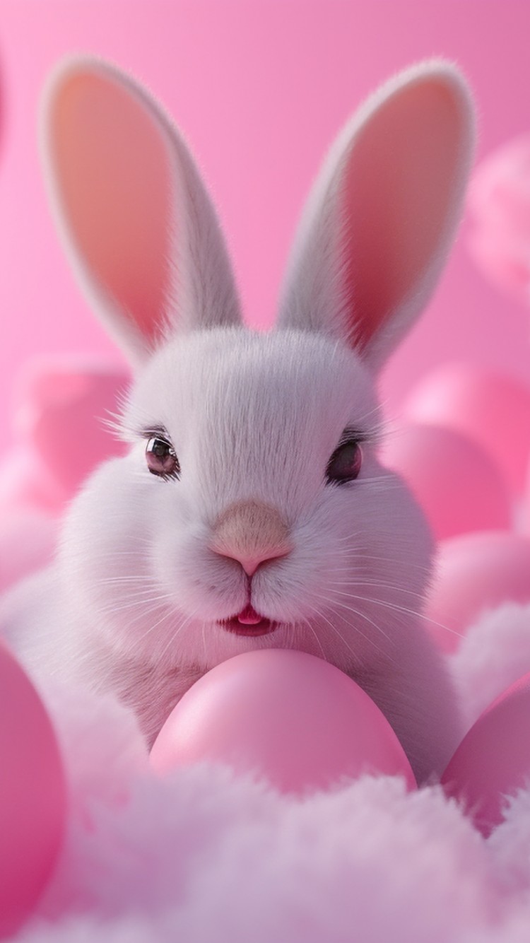 Easter Bunny Pink Eggs Illustration Wallpaper - 750x1334