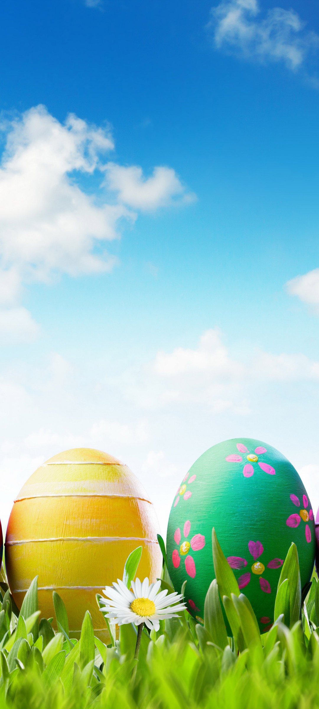 Painted Easter Eggs Flowers Grass Wallpaper - 1080x2400