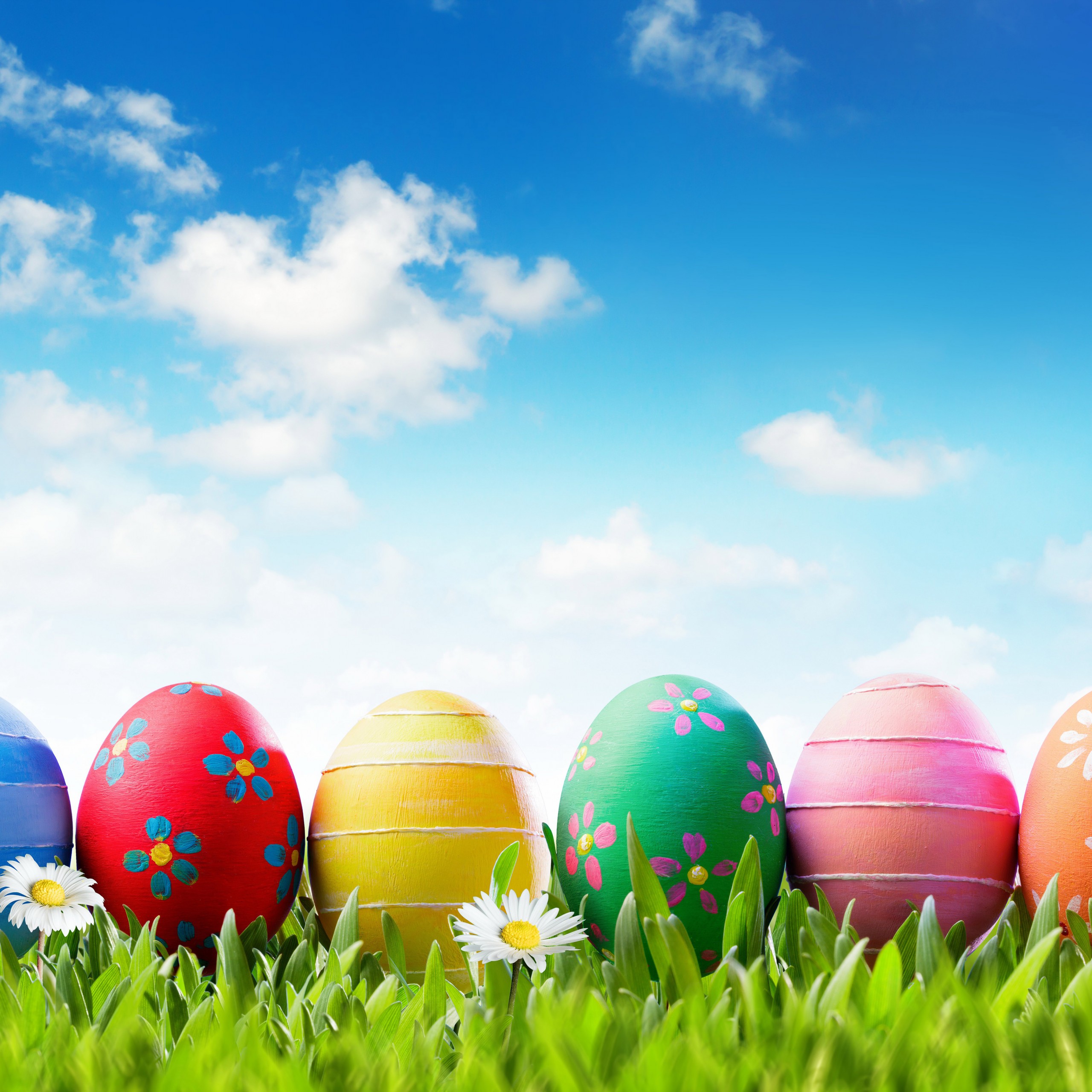 Painted Easter Eggs Flowers Grass Wallpaper - 2560x2560