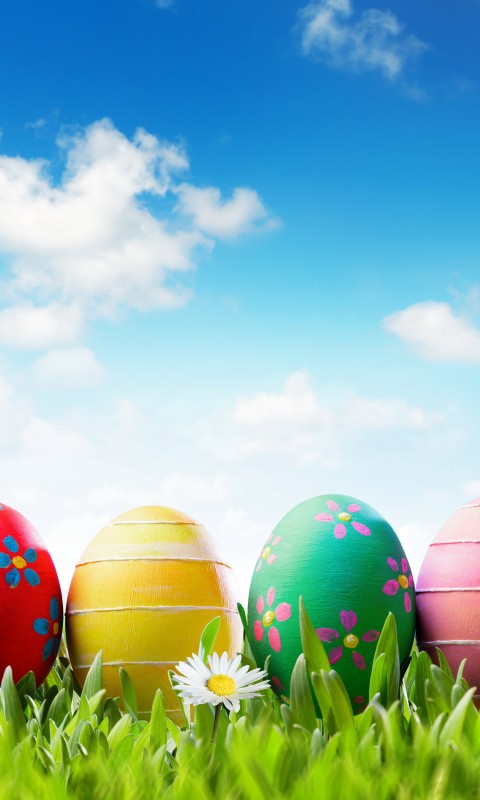 Painted Easter Eggs Flowers Grass Wallpaper - 480x800